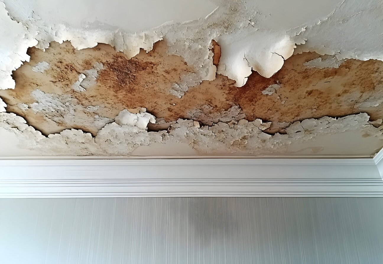 A fallen tree on a damaged roof after a storm, highlighting the need for urgent roof repair.